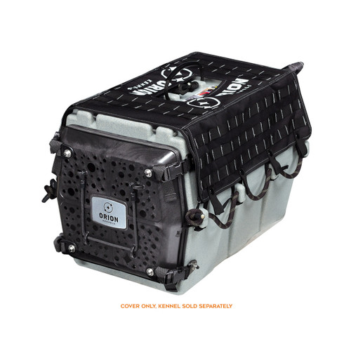 Dogs need gear. Humans have gear. This is the cover to manage them both. Covered in MOLLE webbing and fitted to each kennel by size, our custom MOLLE Kennel Cover lets you organize your kennel into a mobile base camp and tool in the field. In foul and cold weather side panels cover the side vents to help keep the elements out, and in warmer weather they can be rolled up for more ventilation. Buckled on securely with straps around the rope anchor points, and quickly removable when you want to run light. Kennel not included.